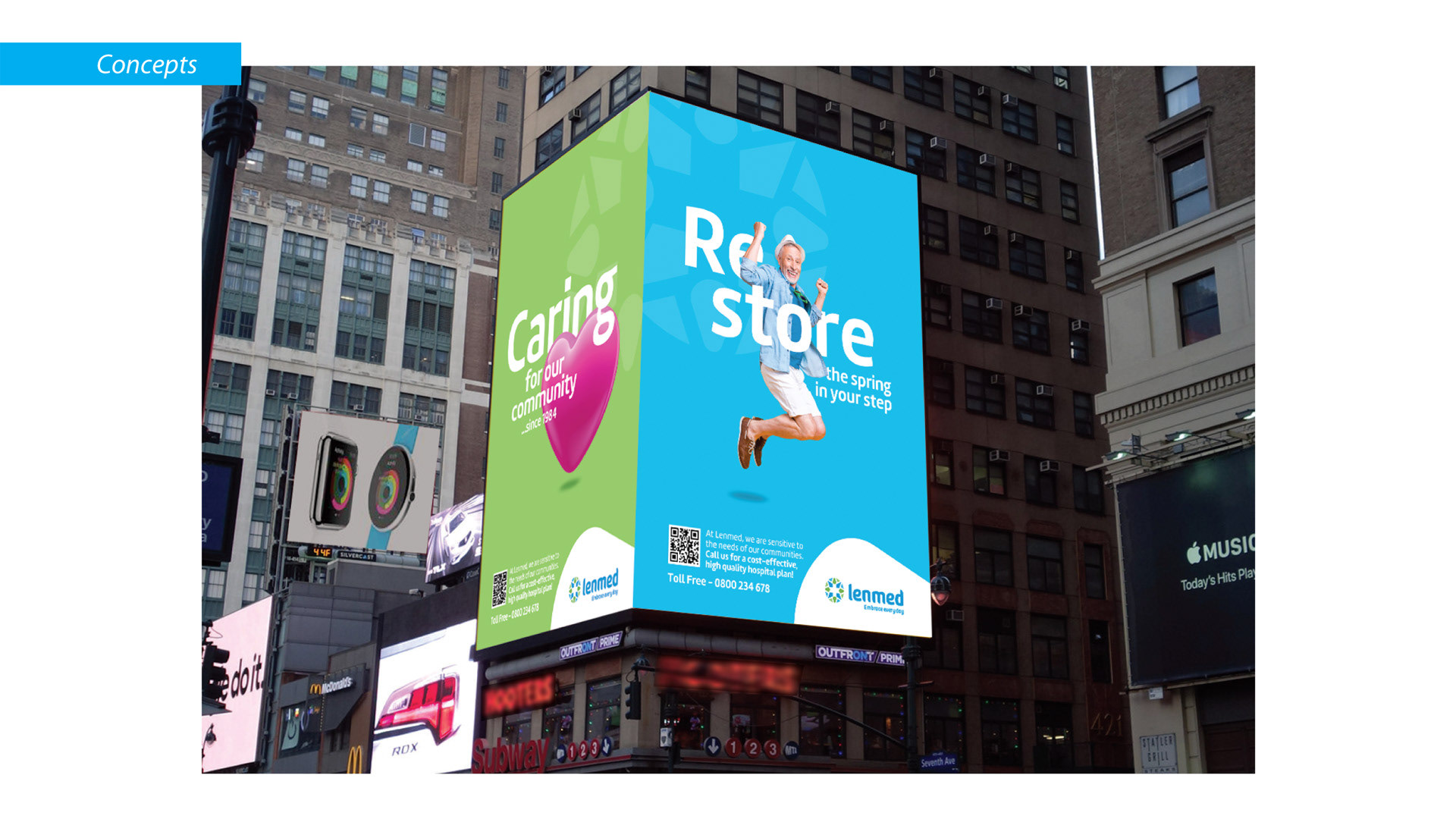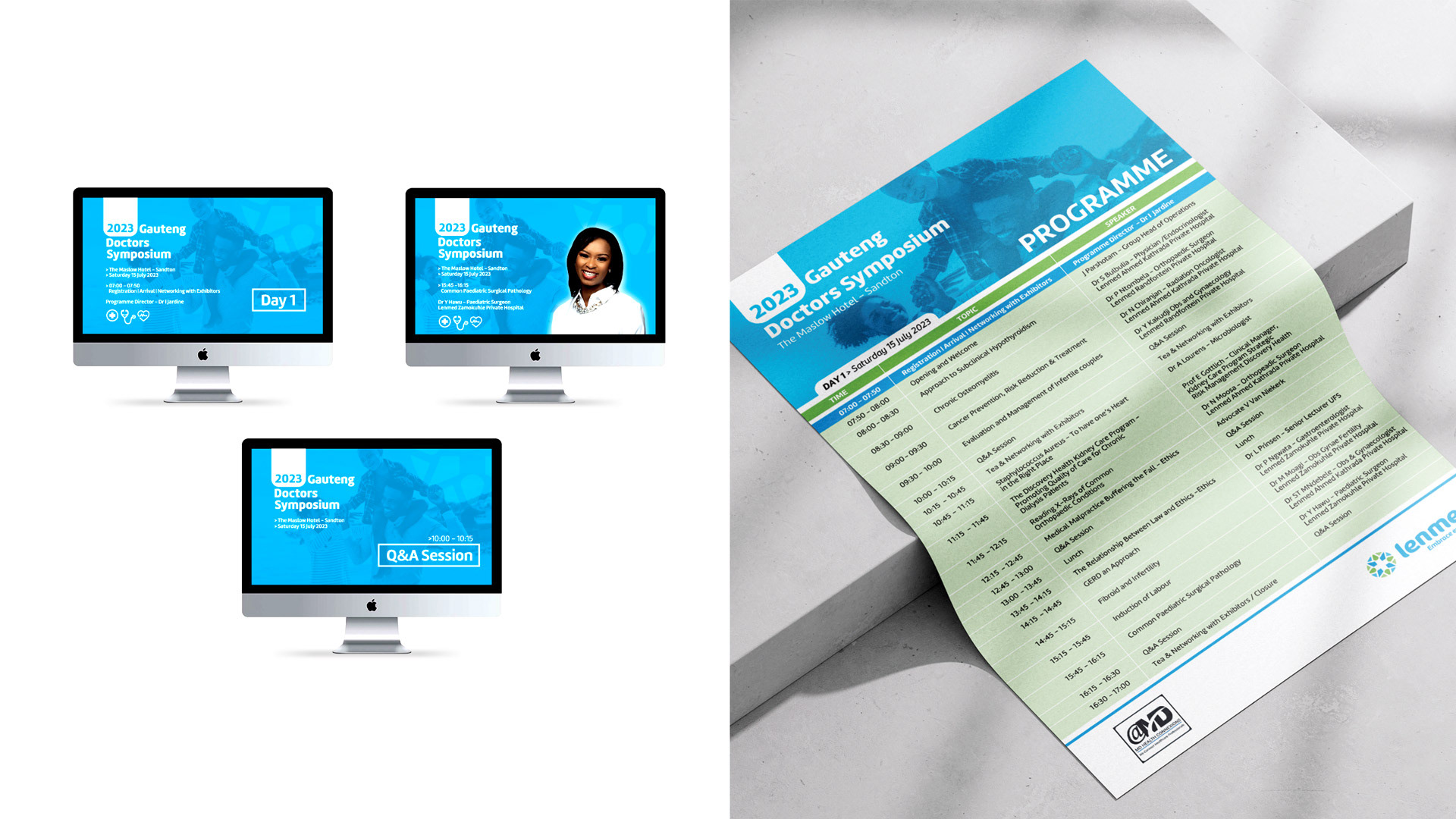 The scope of work included campaign concepts, outdoor advertising, digital screens, event and conference collateral, internal communications, printed and branded assets for community initiatives. Each execution was designed to align with Lenmed’s visual identity while adapting seamlessly across formats and touchpoints, ensuring clarity, accessibility, and relevance in both clinical and public-facing spaces.