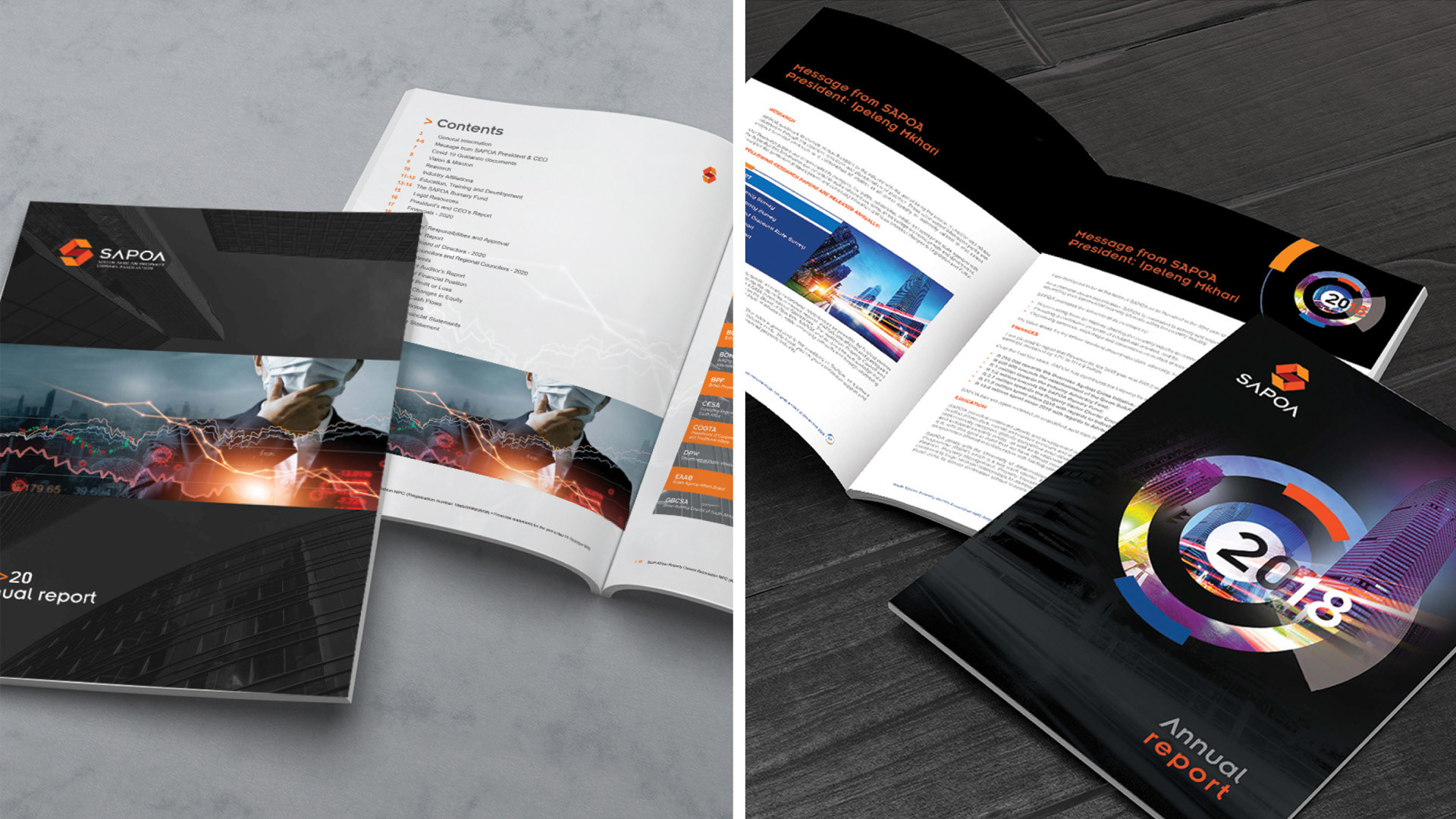 The scope of work included the design of a new corporate identity, brand guidelines, annual reports, publications, campaign materials, event branding, conference collateral, digital assets, social media content, exhibition environments, and large-scale venue applications. The refreshed brand was rolled out across multiple touchpoints, ensuring consistency, clarity, and adaptability while supporting SAPOA’s role as a forward-thinking, influential industry body